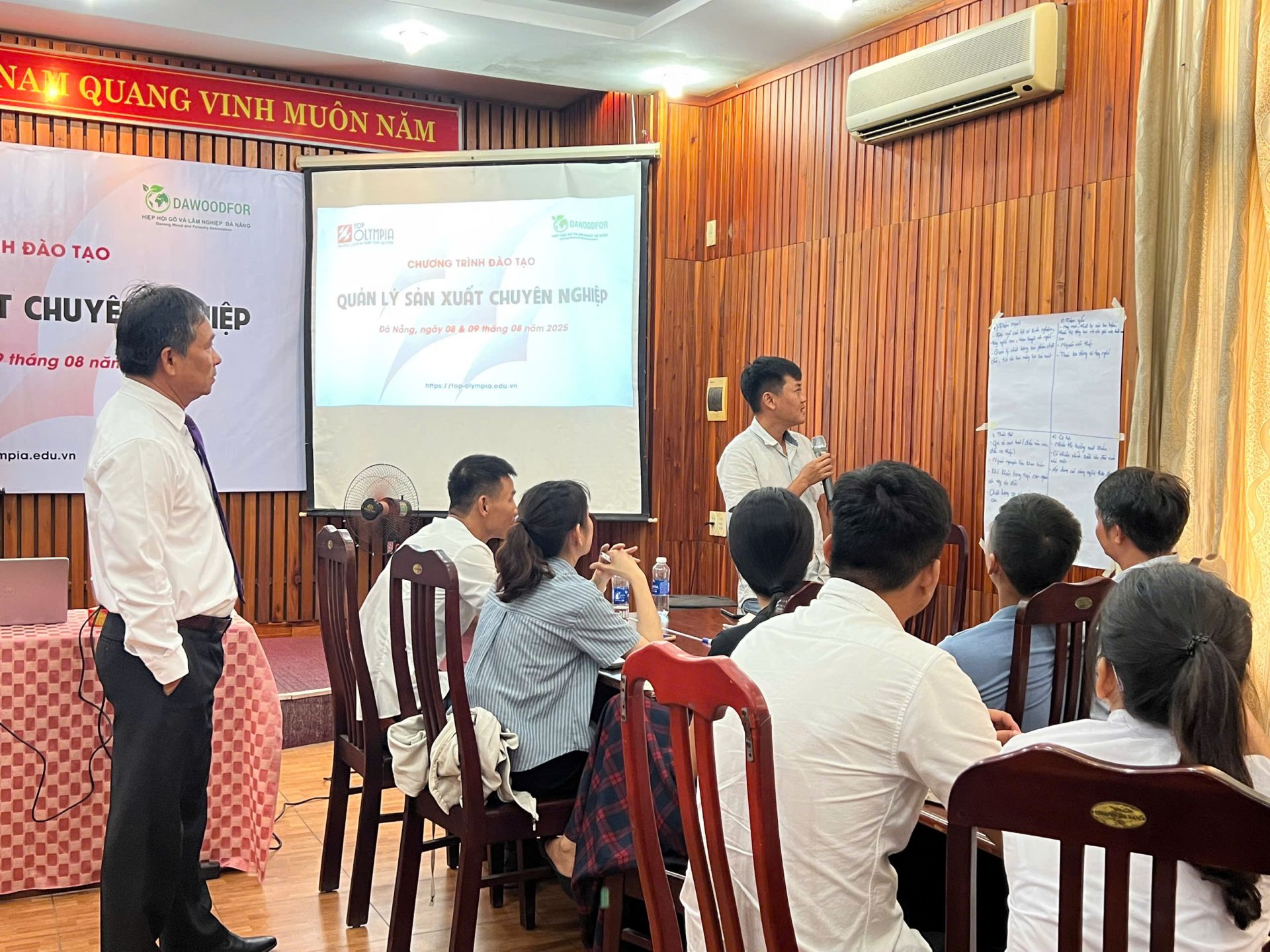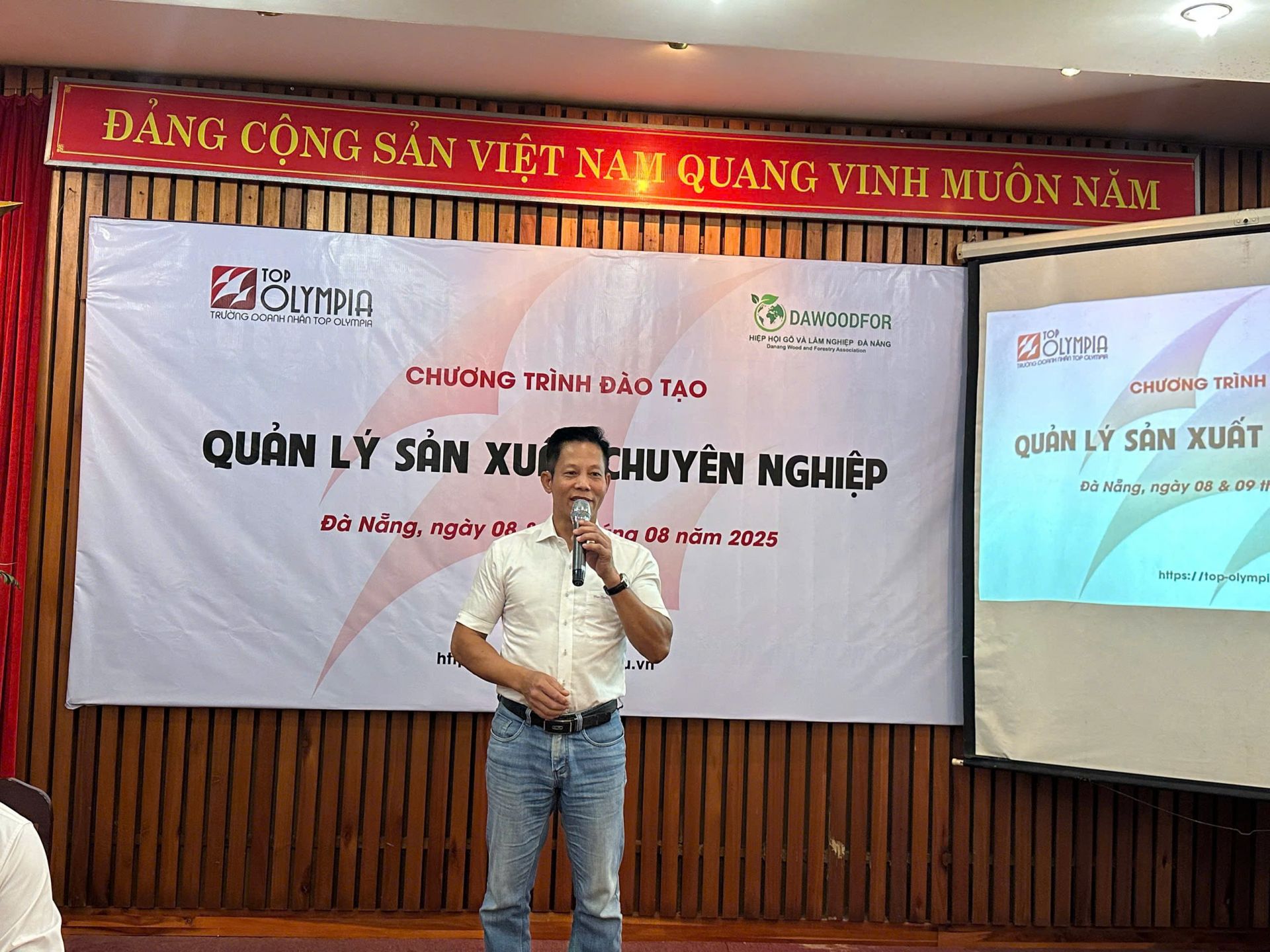 Nhằm giúp cho các thành viên của Hiệp hội gỗ và lâm nghiệp Đà Nẵng có cái nhìn sâu hơn về công tác quản lý sản xuất, từ ngày 8 đến ngày 9 tháng 8 năm 2025, Hiệp hội gỗ và lâm nghiệp Đà Nẵng đã tổ chức khoá đào tạo “Chương trình đào tạo quản lý sản xuất chuyên nghiệp” với sự tham gia của các thành viên trong Hiệp hội gỗ và lâm nghiệp Đà Nẵng. Qua khoá đào tạo này, các doanh nghiệp sẽ hiểu rõ hơn về công tác tối ưu hóa quy trình, cách nâng cao chất lượng sản phẩm, giảm chi phí và tăng khả năng cạnh tranh trên thị trường, giúp học viên nâng cao tư duy quản lý sản xuất hiện đại, đảm bảo sử dụng tài nguyên một cách hợp lý, đáp ứng tốt nhu cầu của khách hàng, bên cạnh đó, tăng khả năng cạnh tranh trên thị trường, nâng cao năng suất, chất lượng và hiệu quả trong doanh nghiệp. Dưới đây là một số hình ảnh hoạt động tại khoá đào tạo: